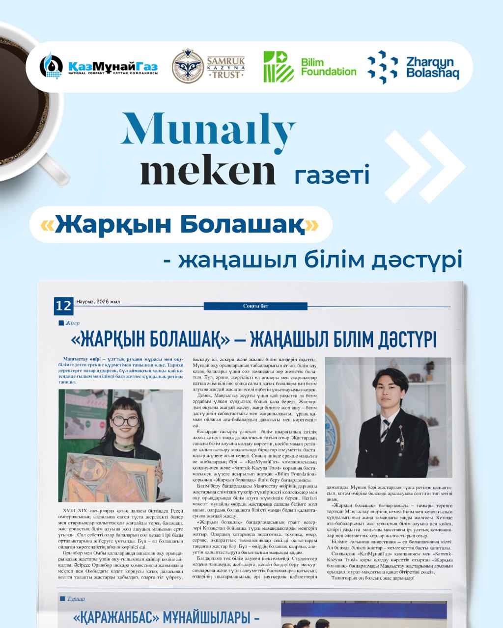 "MUNAILY MEKEN" газеті: "Жарқын Болашақ" - жаңашыл білім дәстүрі